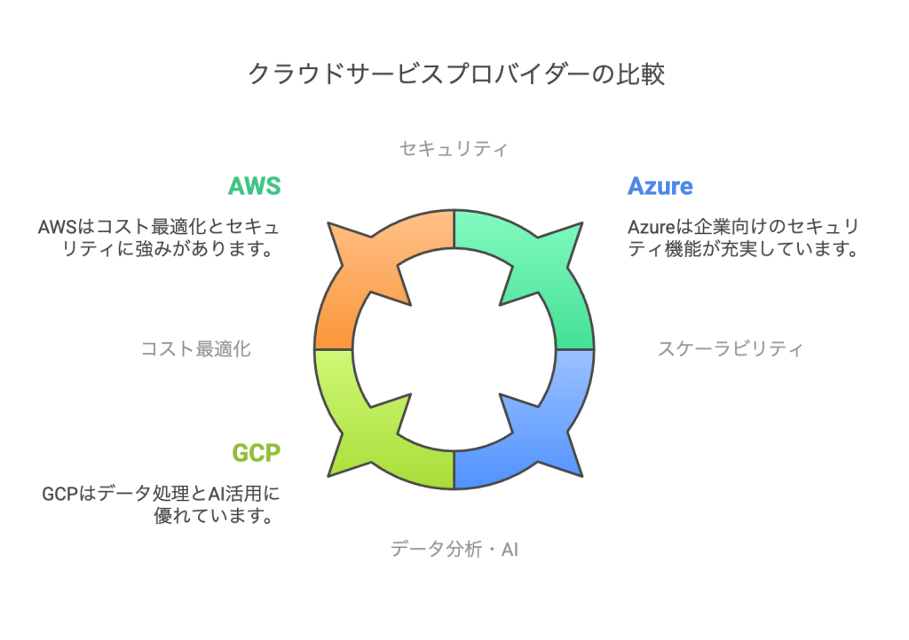 企業は自社の優先課題を明確にし、各クラウドプロバイダーの特徴を慎重に比較検討することで、最適なサービスを選択できます。