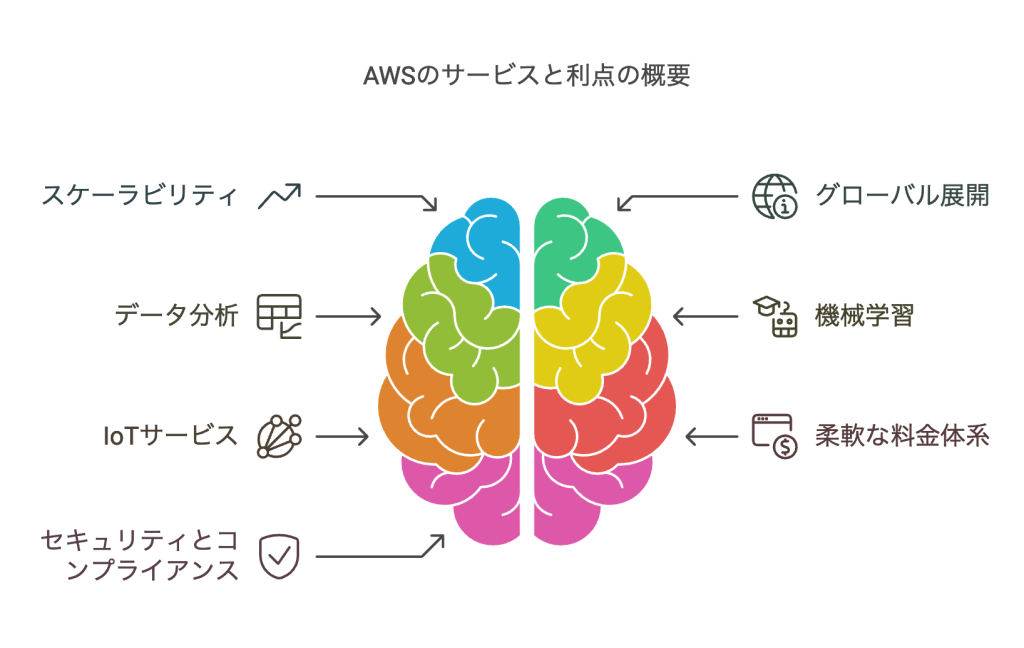 - 幅広いサービス群とスケーラビリティ: AWSは、コンピューティング、ストレージ、データベース、機械学習など多岐にわたるクラウドサービスを提供しています。これにより企業は、プロジェクトや業務要件に応じて必要なリソースを柔軟に調整できます。