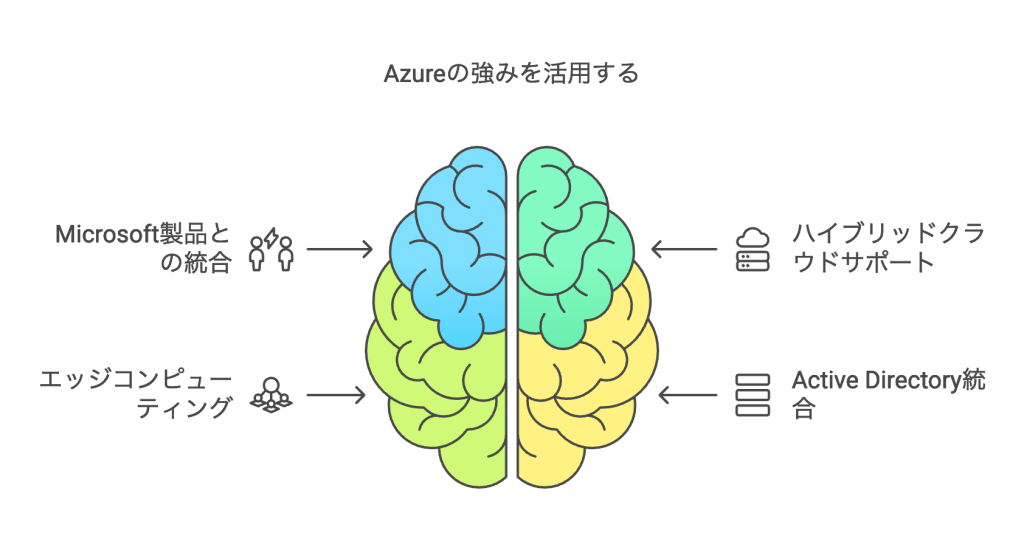 Azureは、Microsoft製品との優れた統合性とハイブリッドクラウドのサポートを強みとしており、特にエンタープライズ向けのセキュリティ機能が充実しています。企業のIT環境においてMicrosoft製品を多く利用している場合、Azureを採用することで既存のシステムとの親和性が高く、スムーズな移行が可能となります。