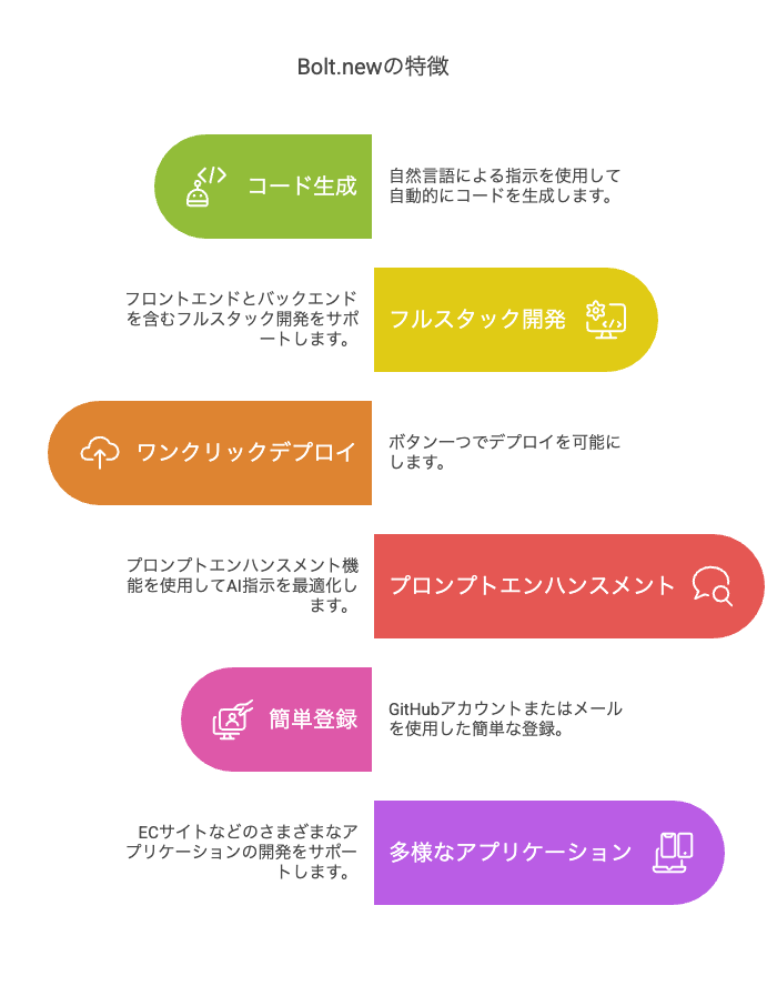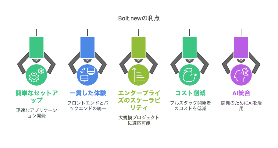 Bolt.newの主なメリットには以下が含まれます: