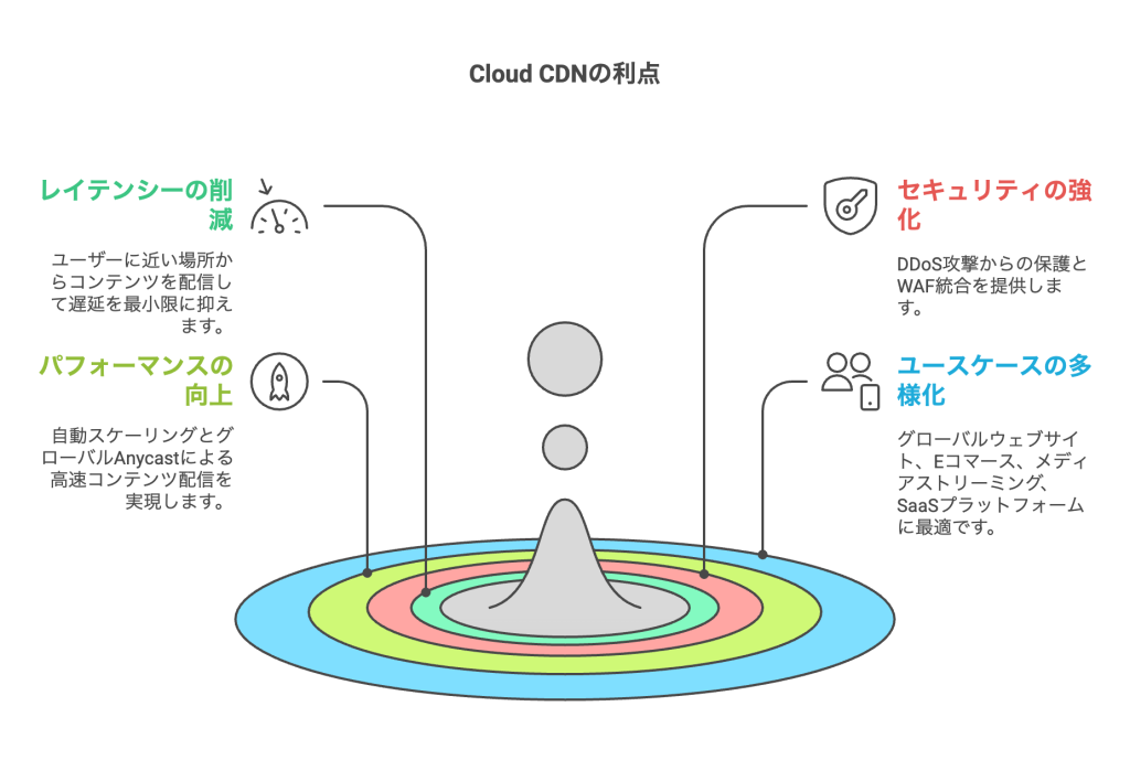 これらの機能により、Cloud CDNはグローバルウェブサイト、Eコマース、メディアストリーミング、SaaSプラットフォームなど、様々なユースケースでコンテンツ配信を最適化し、ユーザーエクスペリエンスを向上させることができます。