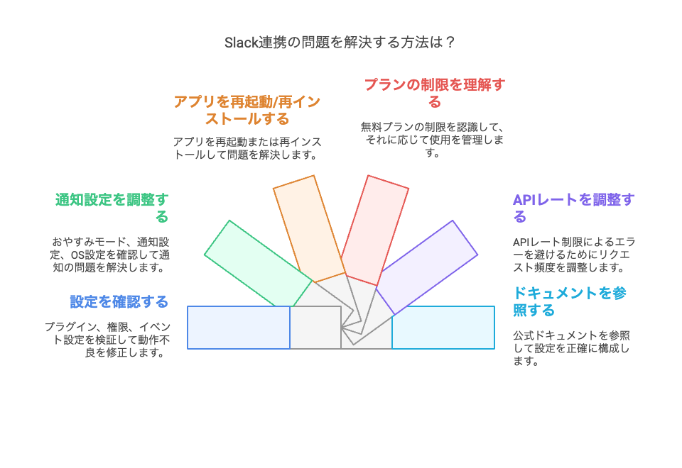 AIチャットボットからの通知がSlackに届かない問題は、以下の確認ポイントを見直すことで解決できます。