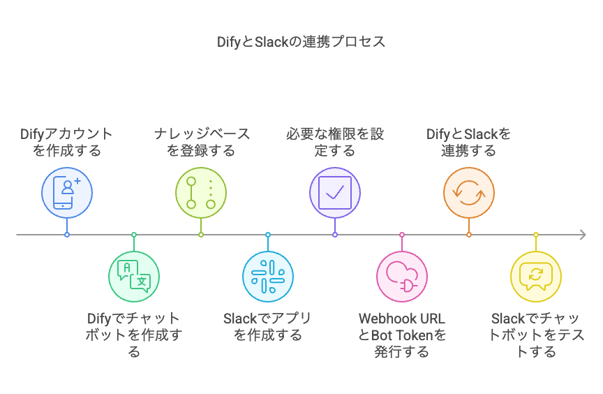DifyとSlackの連携は、プログラミング知識がなくても画面の指示に従うだけで完了する初心者向けの簡単なプロセスです。アカウント作成から実際の運用まで、ステップバイステップで解説することで、技術的な知識がなくても確実に導入できるようになります。それでは、具体的な手順を見ていきましょう。