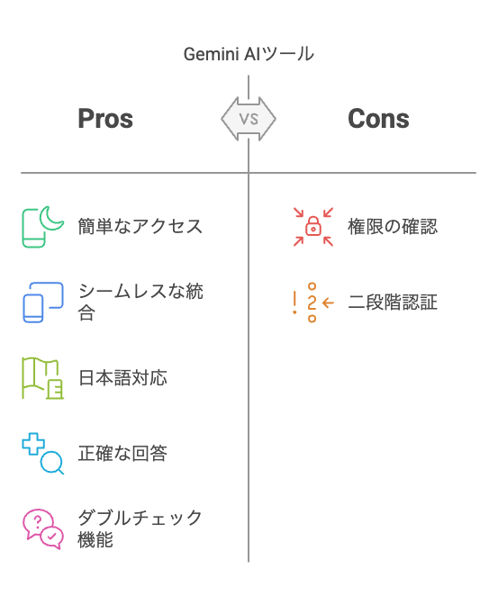 - ドキュメント連携: 「先週のミーティングの議事録を要約して」でGoogleドライブ内ファイルを検索・要約