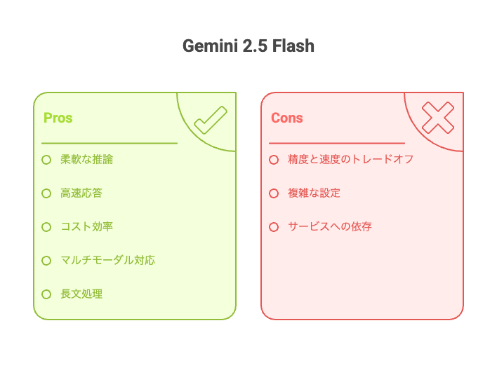 Gemini 2.5 FlashとGemini 2.5 Proは、それぞれ異なる用途と要件に最適化された選択肢として位置づけられており、適切な選択が成功の鍵となります。