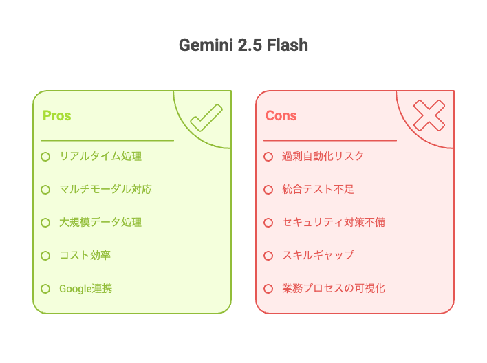 Gemini 2.5 Flashは、高速応答と低コストを実現することで、この課題を根本的に解決しています。