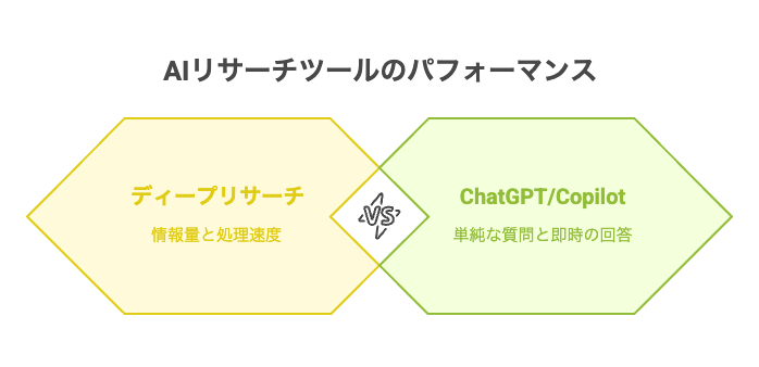 Gemini AdvancedのDeep Research機能は他の主要AIツールと比較すると、情報収集の質と速度のバランスに独自の特徴があります。