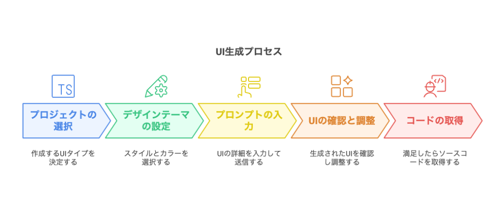 • プロンプトによるUI生成:テキストや画像を入力するだけでAIがUIを作成