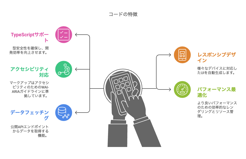 - TypeScriptサポート:型安全性を確保し、開発効率を向上