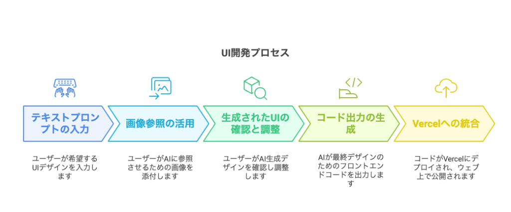 - Vercelプラットフォームとの統合:生成されたデザインとコードの迅速なデプロイが可能